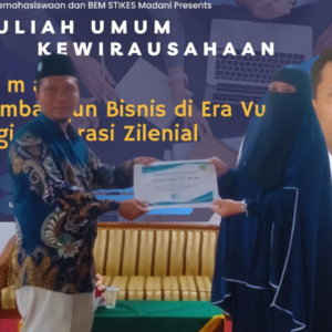 STIKES Madani, 29 November 2023 - Di aula Masjid lantai 3 Islamic Centre Binbaz, kuliah umum Kewirausahaan dengan tema “Strategi Bisnis di Era VUCA bagi Generasi Zilenial” sukses digelar, menandai peristiwa akademis yang penuh inspirasi.